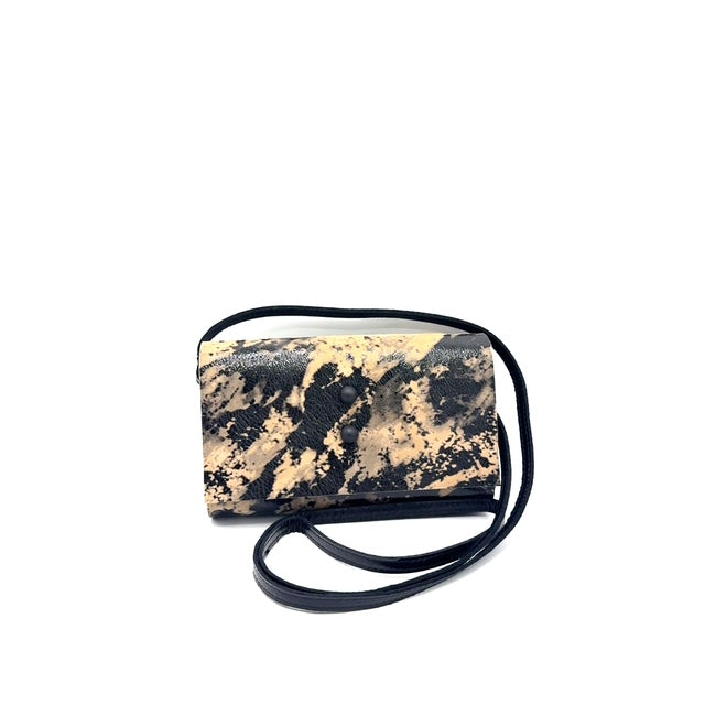 Rebel Designs small cross body bag. Genuine Italian leather with hardware and magnetic closure. Removable strap. Can be worn as cross body bag or a clutch. Handcrafted in Brooklyn. 7.5" x 5" x 2.5" Style #C17.