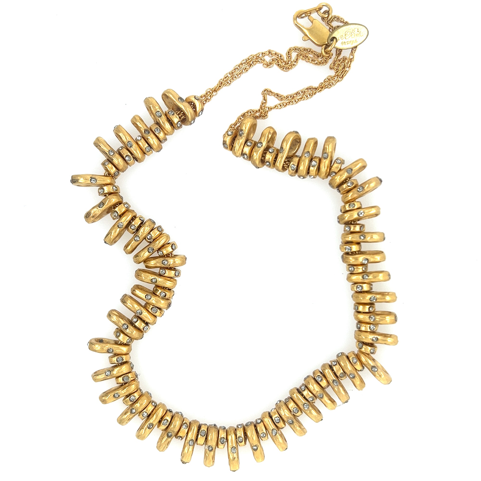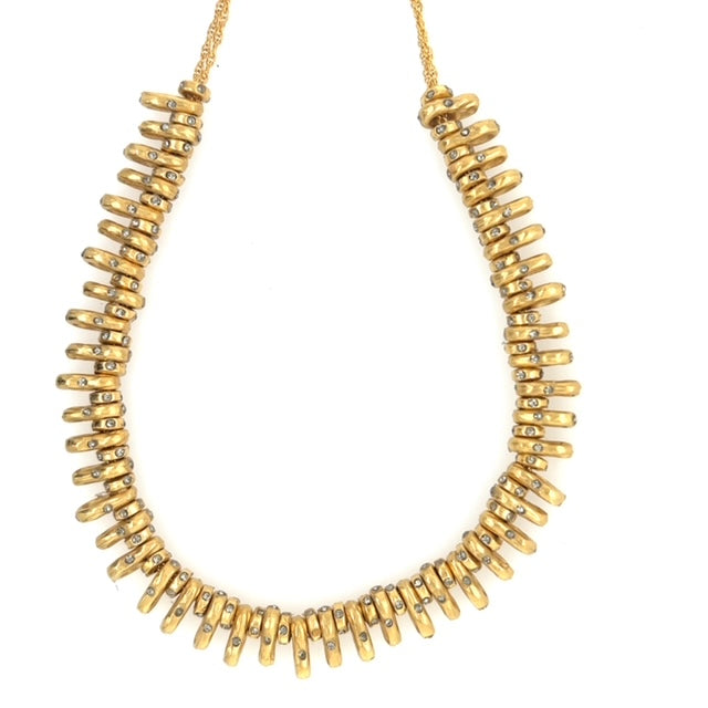 Rebel Hi Lo crystal stacked necklace. 18K gold plate with black diamond crystals. 14"chain with 2" extender. Handcrafted in Brooklyn. Style # RR286